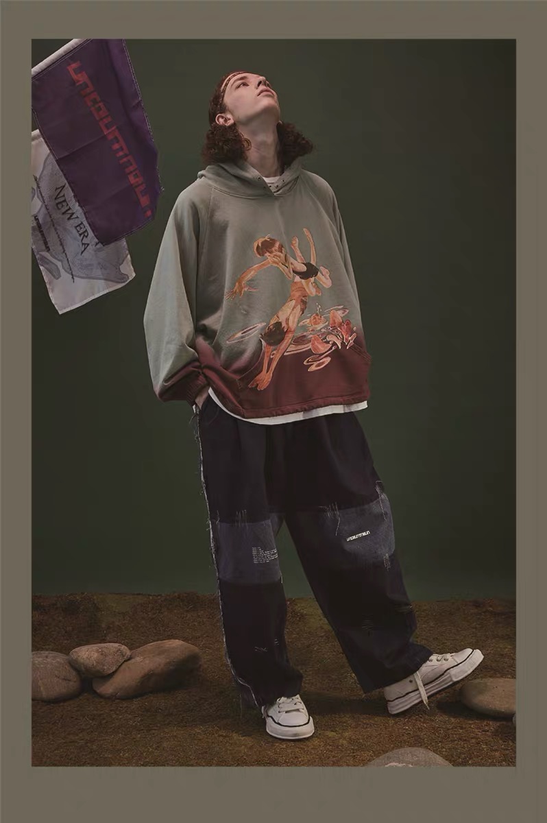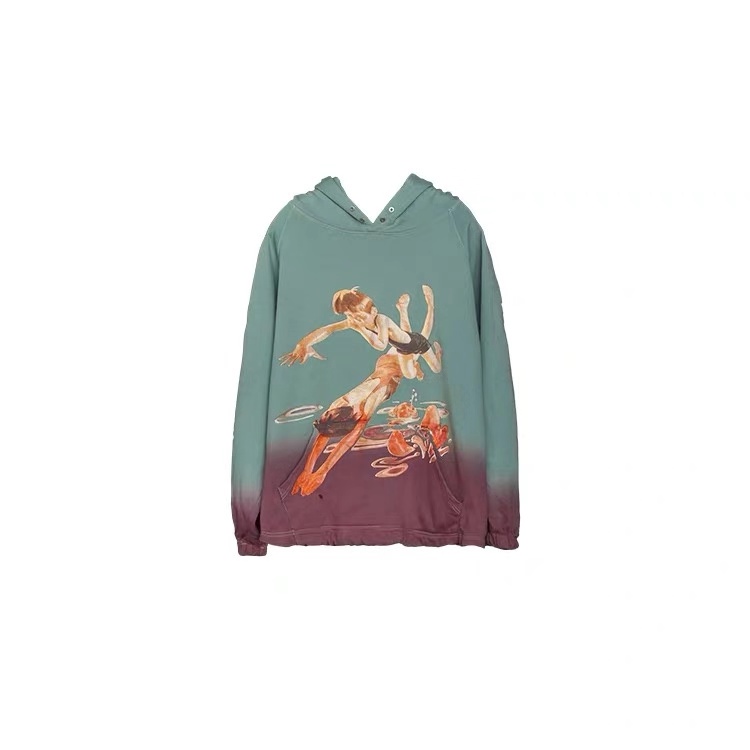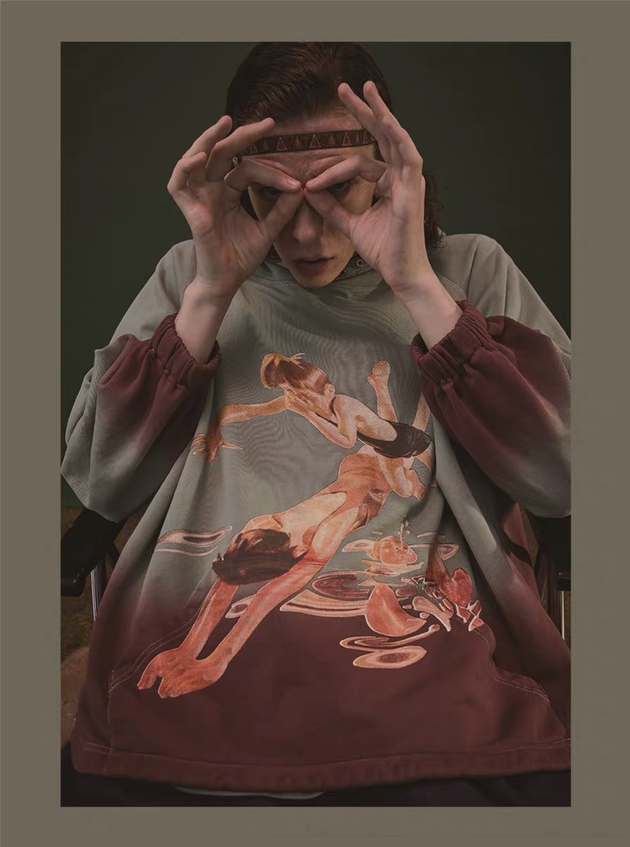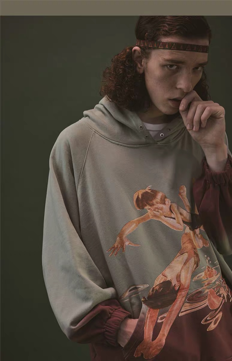 SWIM HOODIE 复古做旧吊染印花卫衣套头衫-易成国际